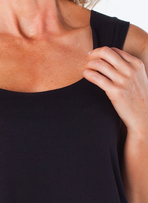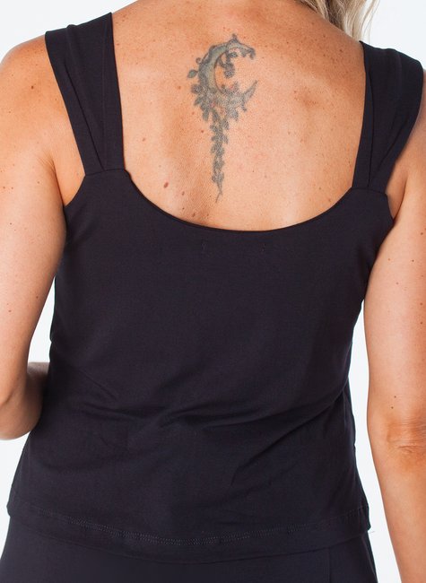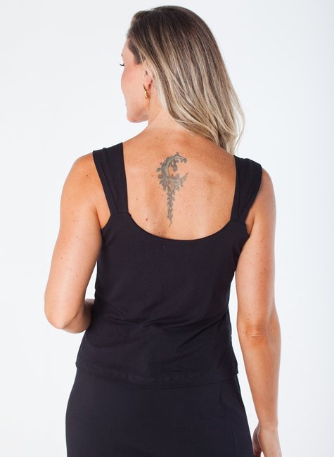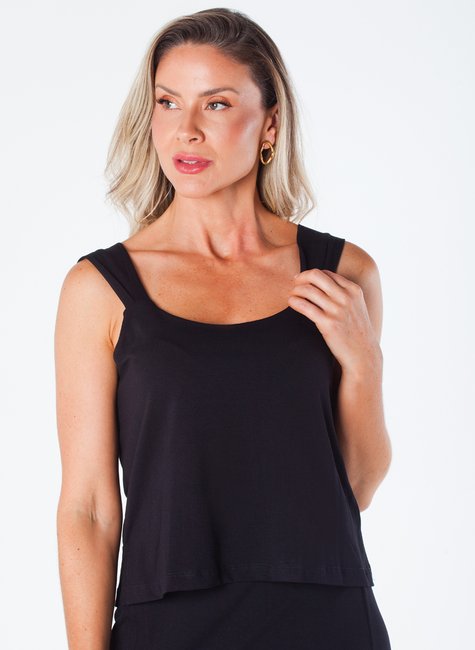 Esta blusa de viscolycra é uma peça elegante e confortável, projetada para ser versátil e sofisticada. Com alça larga, detalhe em pregas e pequena abertura lateral na barra, é ideal para ocasiões casuais ou formais.