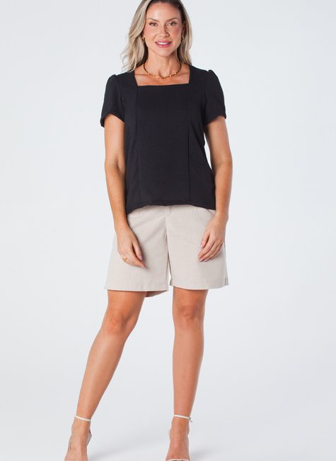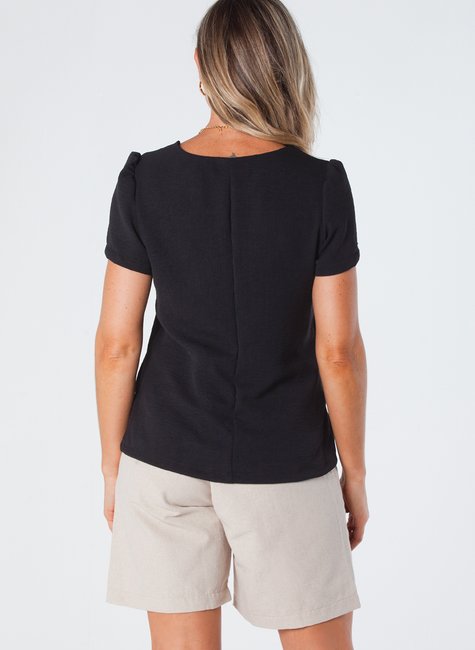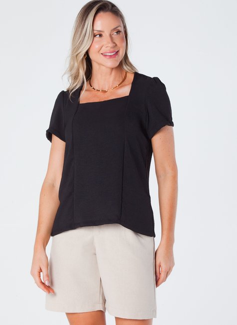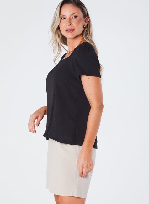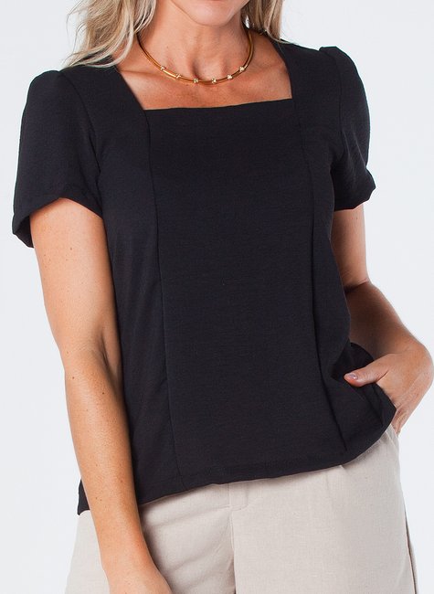 Blusa Decote Quadrado e Manga Franzida Crepe Cloé Preta