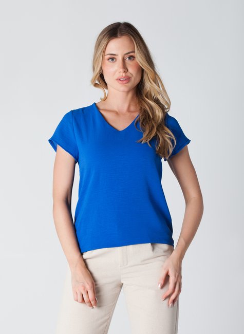 A blusa em crepe com decote V na frente, modelagem soltinha e forro na região do busto é a peça perfeita. Atemporal e versátil e com comprimento na medida ela garante diversos looks e ocasiões.
