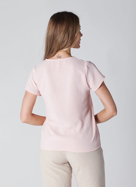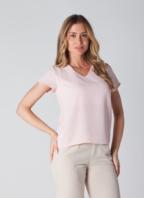 Blusa em Crepe Decote V Rosa Bebê Nina
