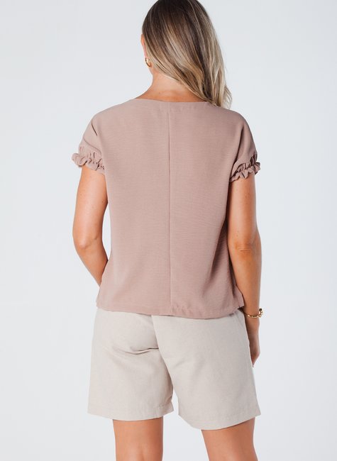 Esta blusa de crepe é uma peça elegante e confortável. Com elástico na manga e gola redonda, é ideal para quem busca uma roupa sofisticada, prática e atemporal.