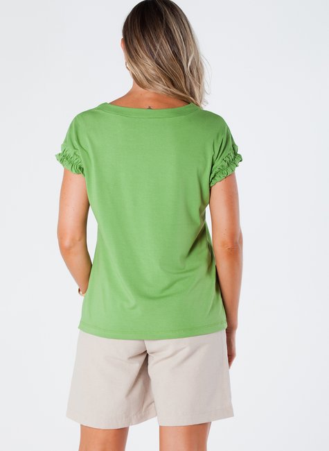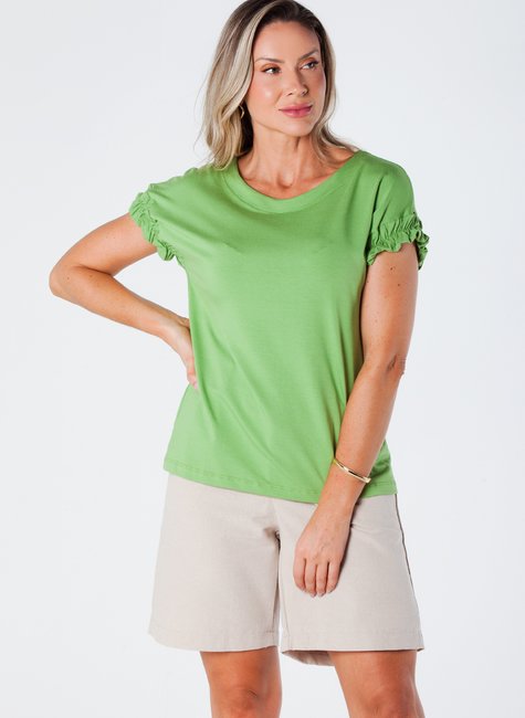 Esta blusa de viscolycra é uma peça perfeita para o verão. Com gola redonda e elástico na manga, é ideal para quem busca uma roupa leve, confortável e prática. Uma escolha certa para qualquer ocasião.