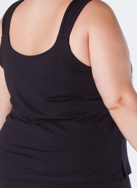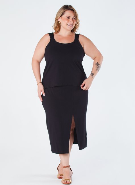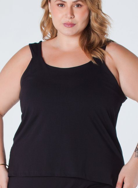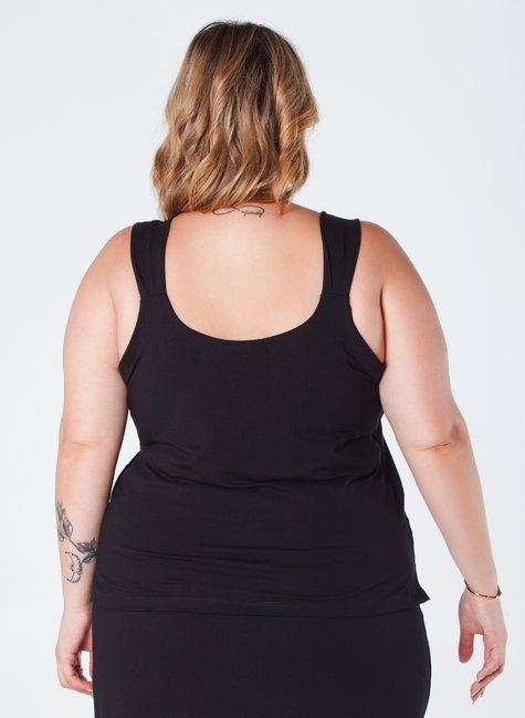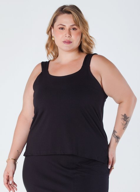 Esta blusa de viscolycra plus size é uma peça elegante e confortável, projetada para ser versátil e sofisticada. Com alça larga, detalhe em pregas e pequena abertura lateral na barra, é ideal para ocasiões casuais ou formais.