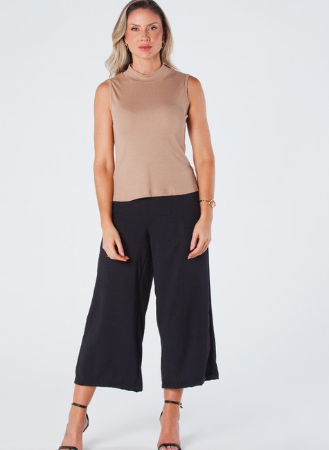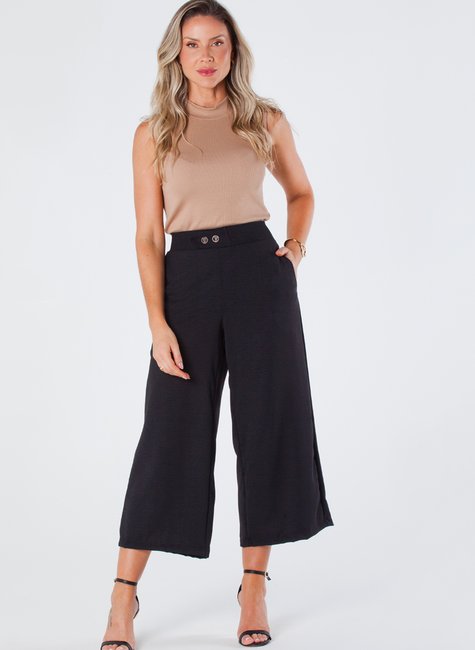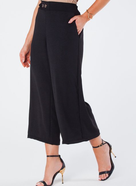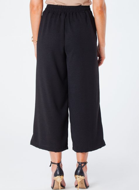 A calça pantacourt de crepe é uma peça elegante e versátil. Possui elástico traseiro para maior conforto e ajuste perfeito na cintura.