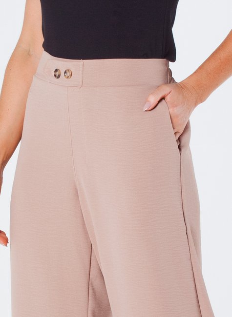 Esta calça pantalona em crepe é uma peça elegante e confortável, projetada para ser usada em diversas ocasiões. Com bolso faca funcional, elástico traseiro na cintura e botões frontais decorativos, é ideal para quem busca estilo e praticidade.