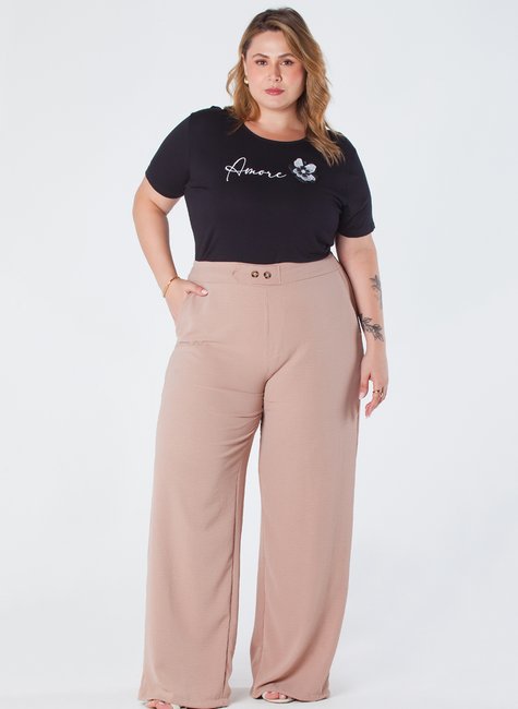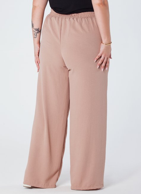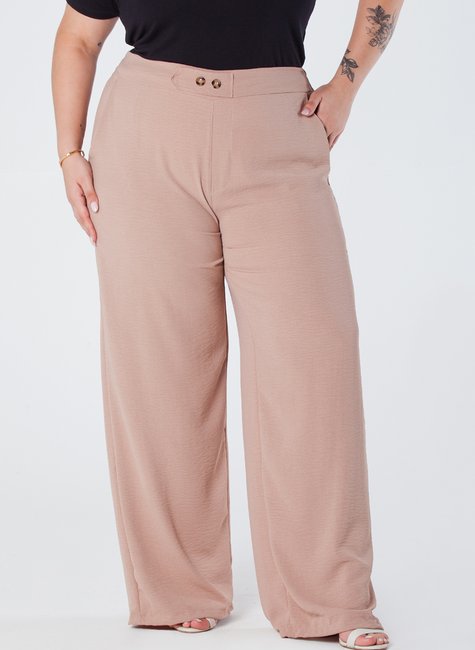 Esta calça pantalona em crepe é uma peça elegante e confortável, projetada para ser usada em diversas ocasiões. Com bolso faca funcional, elástico traseiro na cintura e botões frontais decorativos, é ideal para quem busca estilo e praticidade.