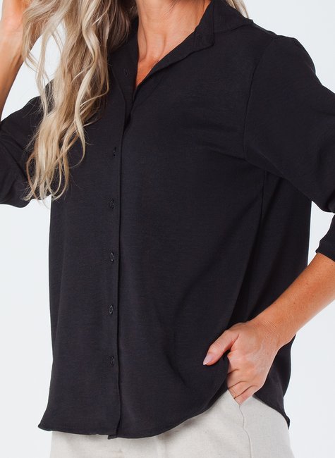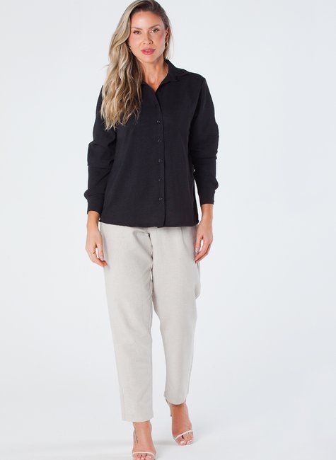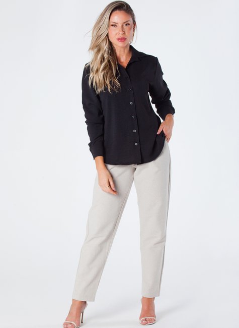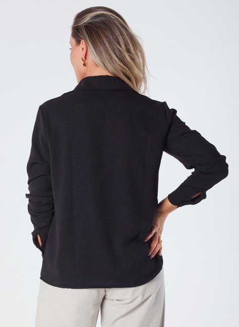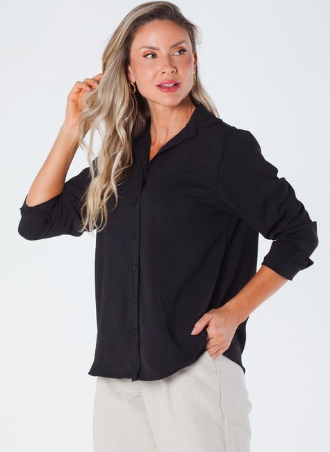 Esta camisa feminina de manga longa é uma peça elegante e sofisticada, projetada para realçar a beleza feminina. Feita de crepe, com botões e martingale, é ideal para quem busca estilo e conforto.