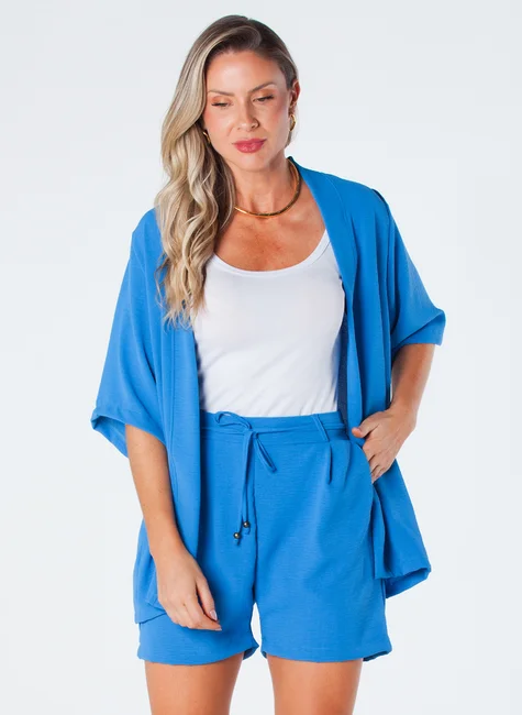 -43%Shorts com Bolso Faca Elástico Traseiro Cordão de Amarração Frontal Azul Angelade R$ 99,90 porR$ 54,06 no PIX