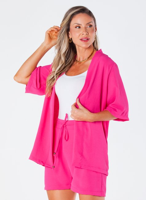 Este kimono de crepe é uma peça elegante e sofisticada, projetada para realçar a beleza feminina em todos os tamanhos. Com barra reta e manga 3/4, é ideal para ocasiões casuais ou formais.