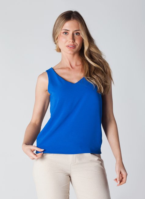 A regata Liz em crepe com decote V na frente e nas costas, modelagem soltinha e forro na região do busto, tanto na frente quanto nas costas é a peça perfeita. Atemporal e versátil e com comprimento na medida para diversos looks e ocasiões.