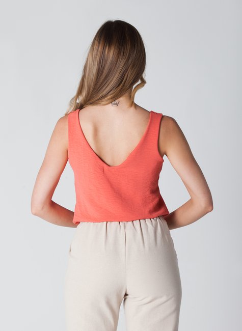04 regata em crepe decote v laranja liz