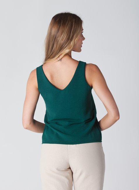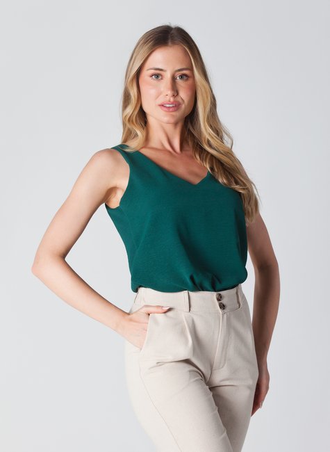 Regata Liz em crepe com decote V na frente e nas costas, modelagem soltinha e forro na região do busto, tanto na frente quanto nas costas. Uma peça atemporal e versátil, com comprimento perfeito para diversas ocasiões.