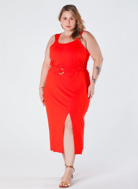 Elegância: A fenda frontal e o cinto com argola decorativa dourada adicionam um toque de elegância