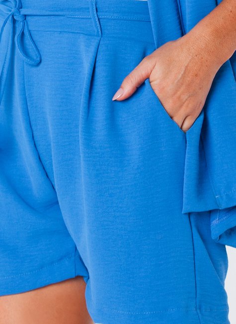 Shorts com Bolso Faca Elástico Traseiro Cordão de Amarração Frontal Azul Angela