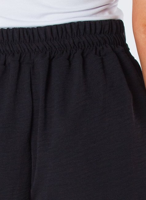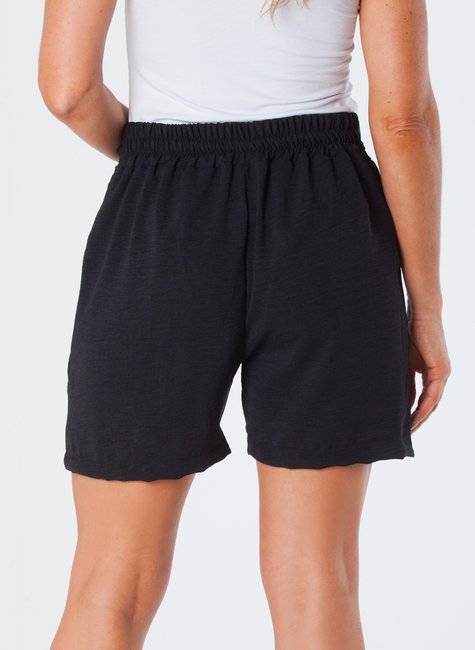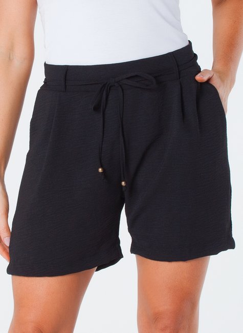 Shorts com Bolso Faca Elástico Traseiro Cordão de Amarração Frontal Preto Angela
