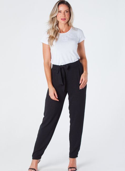 -18%Calça Cenoura com Amarração Frontal Elástico Traseiro Bolso Faca Preta Betinade R$ 96,90 porR$ 75,91 no PIX