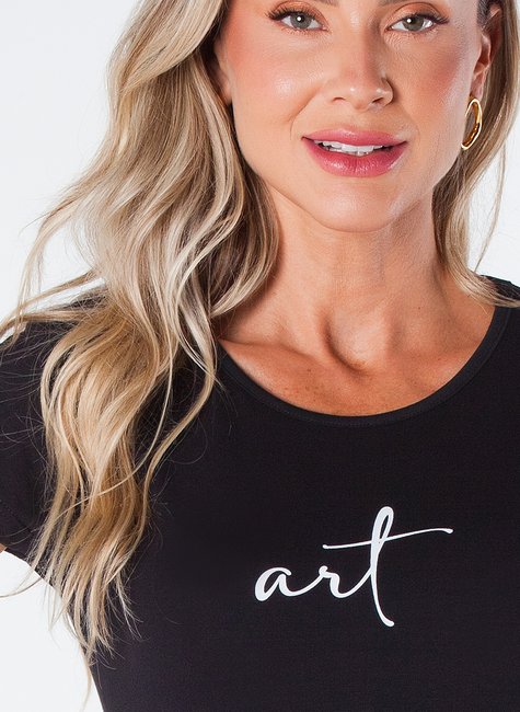 Esta T-Shirt Baby Look estampada com a palavra “Art” é uma peça única e criativa para o verão. Com um design fresco e alegre, é ideal para quem busca uma roupa leve e confortável para expressar sua personalidade.