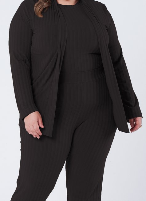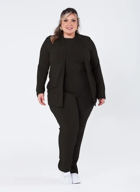 Este conjunto twin set de ribana canelada é uma peça elegante e confortável, perfeita para quem busca uma roupa que combine estilo e praticidade. Com cardigã e regata, é ideal para ocasiões casuais ou simplesmente para um dia a dia mais elegante.
