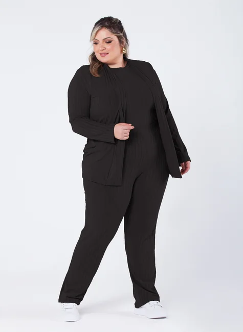-50%Calça Plus Size Ribana Canelada Bolso Faca Funcional com Elástico na Cintura Preta Bertade R$ 159,90 porR$ 75,95 no PIX
