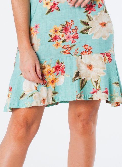 Feminilidade: O babado estampado e a barra com babado adicionam um toque de feminilidade.