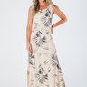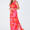 Este vestido longo sem manga é uma peça elegante e sofisticada, projetada para realçar a beleza feminina. Feito de viscose acetinada, com fendas laterais e estampa digital, é ideal para ocasiões formais ou semi-formais.