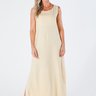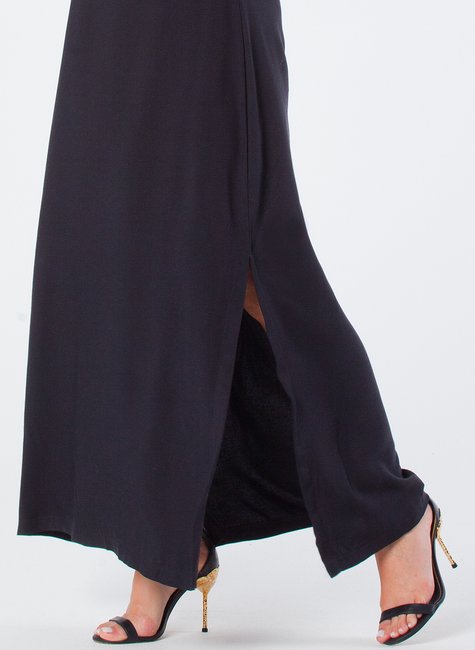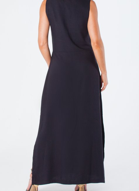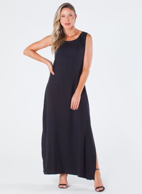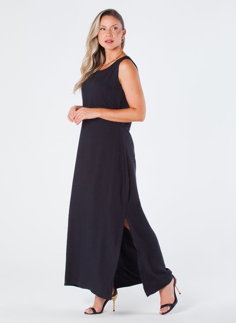 Este vestido longo de viscolinho é uma peça elegante e sofisticada, projetada para realçar a beleza feminina. Com fendas laterais e decote redondo sem mangas, é ideal para ocasiões especiais ou simplesmente para um dia a dia mais elegante.