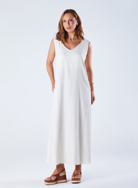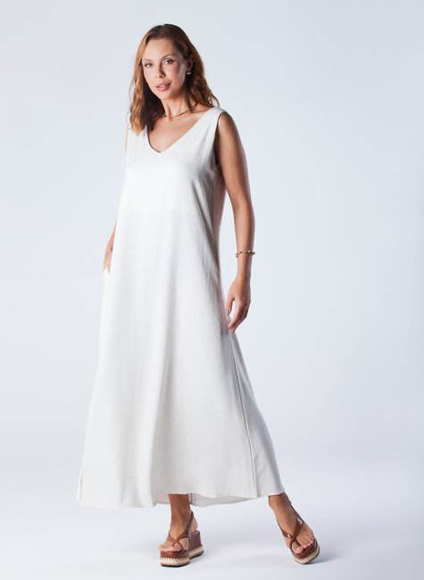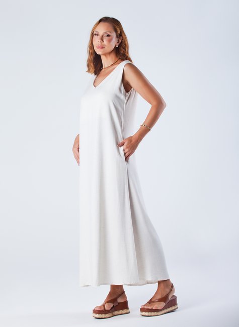 Este vestido é perfeito para looks casuais chiques ou praianos sofisticados. O vestido Lina é a pedida certa para quem busca conforto e elegância na medida. Com sua modelagem ampla, bolsos e decote V na frente e costas, ele confere uma atmosfera de frescor e versatilidade.