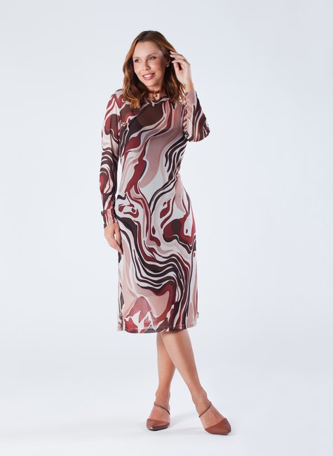 Prepare-se para se apaixonar pela combinação perfeita de elegância e modernidade. Nosso Vestido Midi de Tule Estampado é a peça chave para um guarda-roupa sofisticado, ideal para eventos diurnos ou noturnos que pedem um toque de charme e feminilidade.