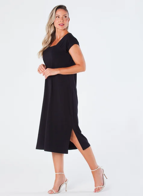 Este vestido midi de viscolycra é uma peça elegante e confortável, projetada para realçar a beleza feminina. Com gola quadrada, ombro franzido e fendas laterais, é ideal para ocasiões especiais ou simplesmente para um dia a dia mais elegante.