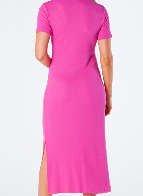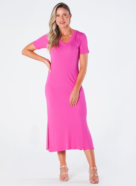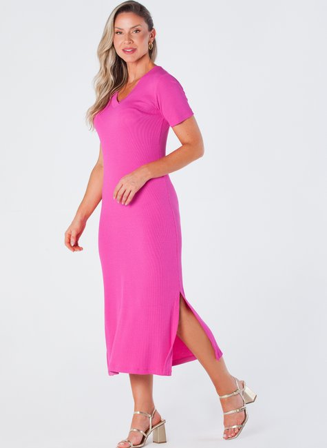 Este vestido midi de ribana canelada é uma peça elegante e confortável, projetada para realçar a beleza feminina. Com manga, fendas laterais e gola V, é ideal para ocasiões casuais ou formais.