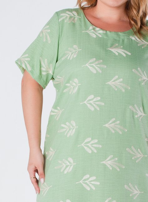 Este vestido midi plus size é uma peça elegante e sofisticada, perfeita para quem busca uma roupa que combine estilo e conforto. Com decote redondo e tecido bordado, é ideal para ocasiões especiais ou simplesmente para um dia a dia mais elegante.