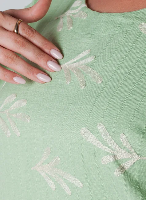 Decote Redondo: O decote redondo é um detalhe clássico e elegante.