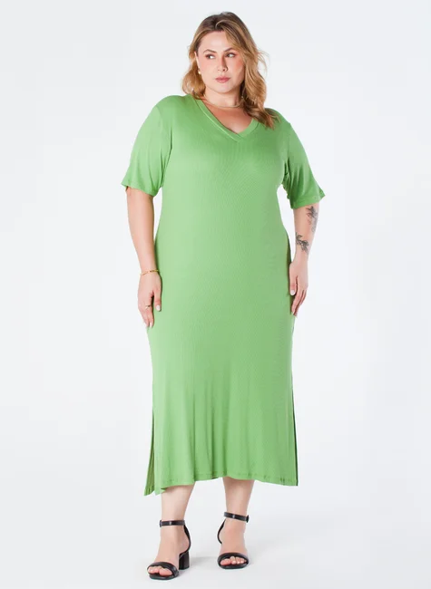Este vestido maxi midi plus size de ribana canelada é uma peça elegante e confortável, projetada para realçar a beleza feminina em todos os tamanhos. Com gola V e manga, é ideal para ocasiões especiais ou simplesmente para um dia a dia mais elegante.
